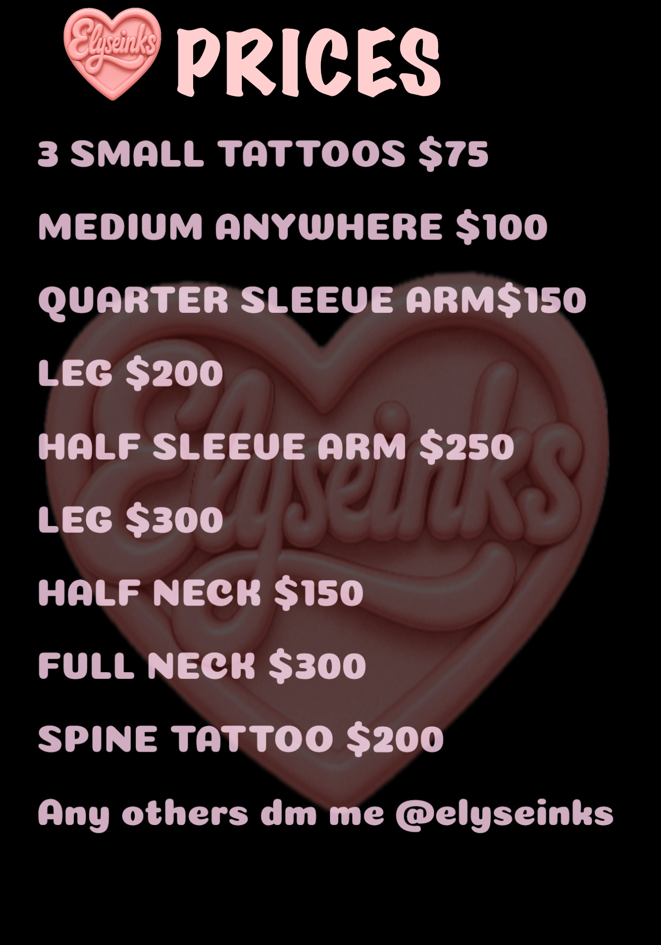 Once paid text “TATTOO” to (404)654-0817 for a confirmation and further instruction such as location, design, and any other questions.